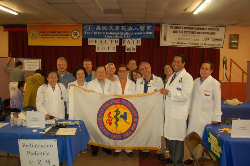 Mel Guadalupe, Director Suffolk County Office of Minority Affairs, Dr. Minda Santangelo, President of the Association of Philippine Physicians of New York (APPNY), Jim Young, Chair of the Asian American Advisory Board, Commission M. Bayton, Dr. Richard Hwang, Director, Tzu Chi International Medical Association (TIMA), Ramon Villongco, AAAB Health Fair Chairman, Joan Sung, Tzu Chi Foundation –Long Island Branch.