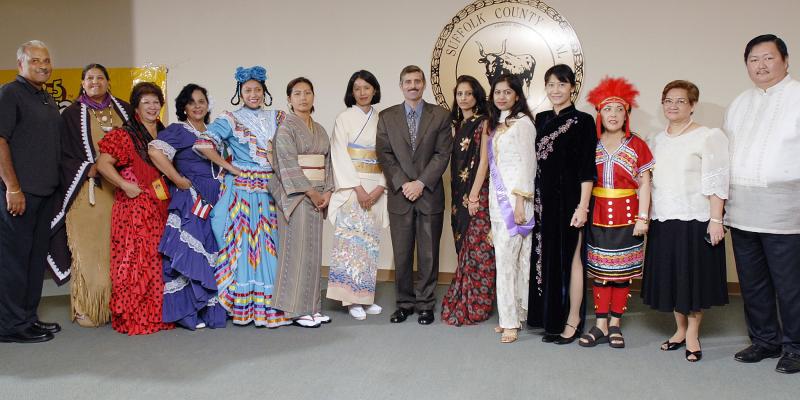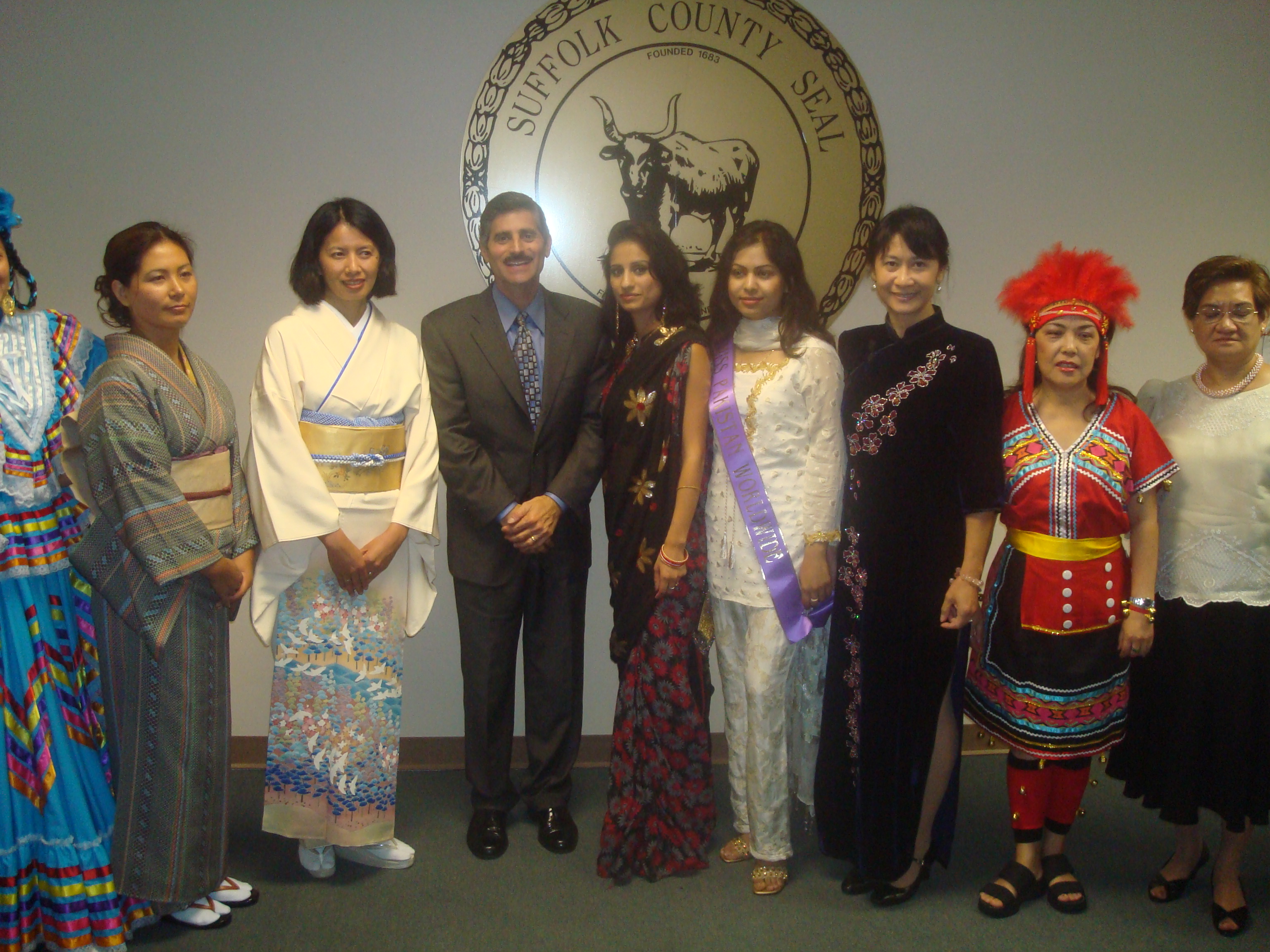 Mel Guadalupe, Director Suffolk County Office of Minority Affairs, representatives’ from different nations including Native American Indians, Puerto Rico, Japan, India, Pakistan, Taiwan, China and Philippines. Suffolk County Executive Steve Levy (center). Suffolk County Unity Day hosted by Steve Levy, Suffolk County Executive and the Office of Minority Affairs with its theme “Cultural Diversity In A Changing World” held on September 26, 2008 at the H.L. Dennison Building in Hauppauge, NY.